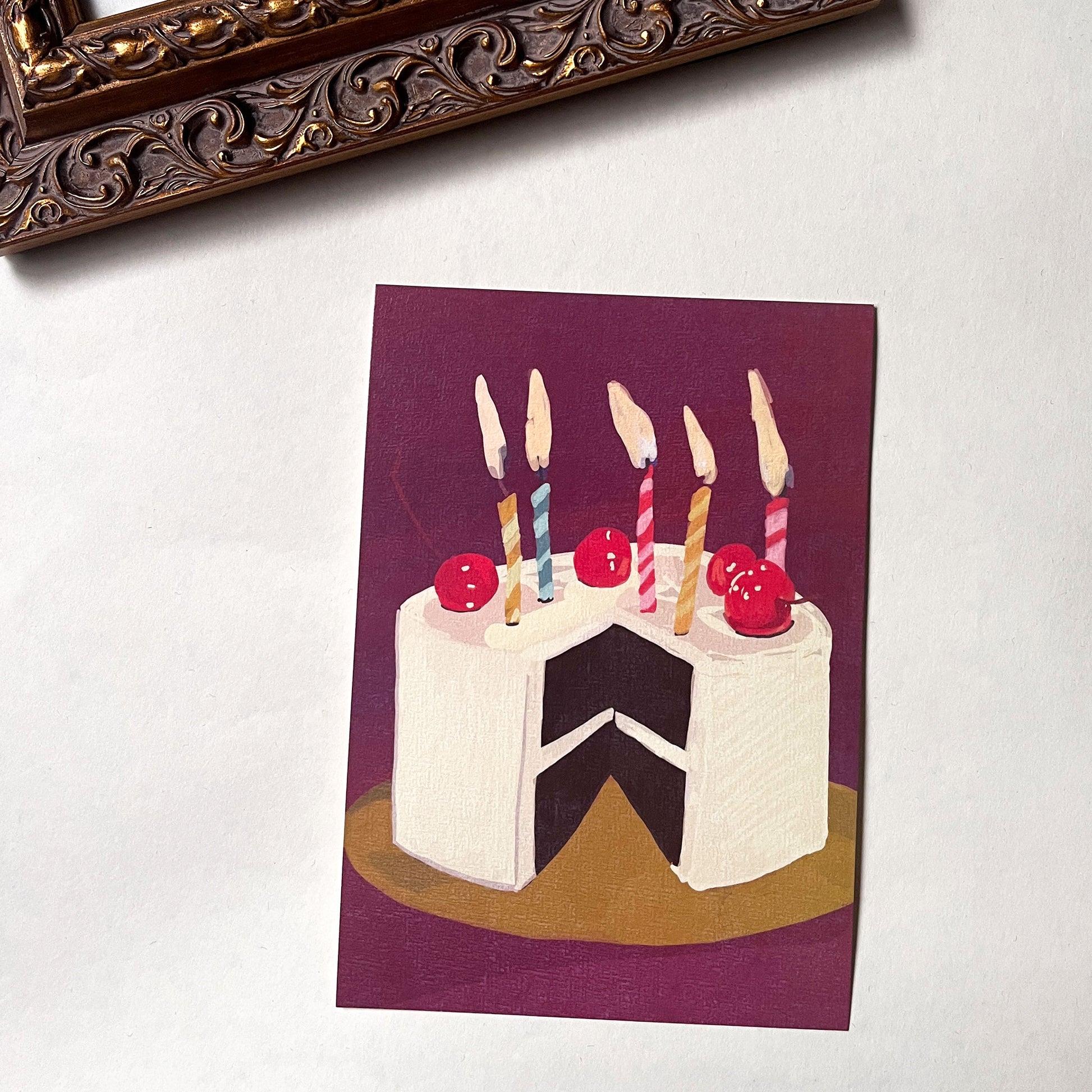 Mark life’s milestones with Salgirah Cake, an art print that captures the joy and warmth of a birthday. A decadent black forest cake stands proudly, topped with flickering candles ready to be blown out in a room filled with laughter, love, and the familiar hum of happy birthday sung in many voices.